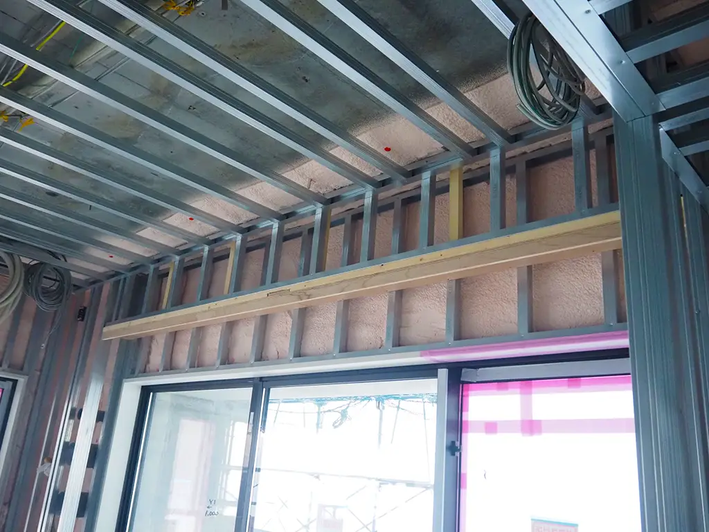内装工事の品質を左右する、重要な基盤となるのが軽鉄工事です。当社では、鋼製下地軸組の壁・天井工事を中心に、耐震性能が求められる天井工事やスパンドレル工事まで、精度を重視した施工を行っています。JACCA会員として基準を遵守し、見えない部分にこそ妥協しない施工で、次工程につながる確かな下地をつくります。